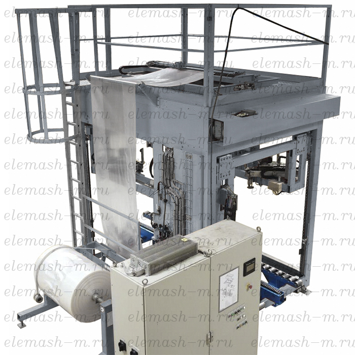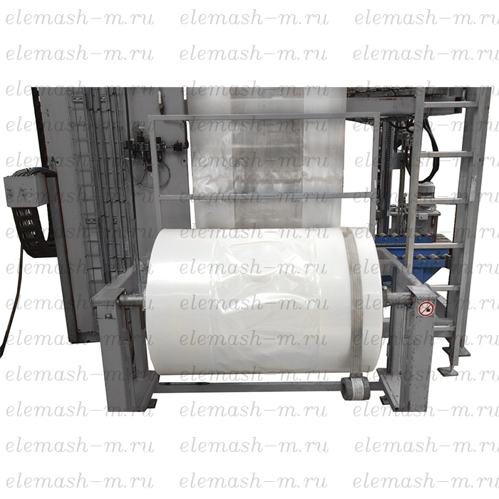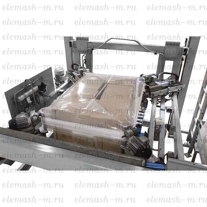 Приводной узел размотки и подачи стрейч-пленки установлен сбоку машины и приводится в действие мотор-редуктором. Управление захватами растяжки и группировки пленки осуществляется электрическими захватами и четырьмя серводвигателями. Портальная рама изготовлена из квадратного стального профиля Ст3 с окраской.